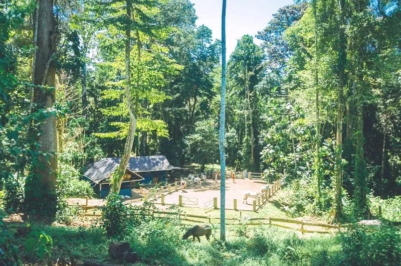 Galangal Room. Shared Jungle Lodging - 2 twin beds. Early Bird: $2,444. Jungle Garden View ⋆ AC ⋆ Wifi ⋆ Hot shower ⋆ 1 Bathroom ⋆ Shared Kitchen Area ⋆ Shared Living Area with Hammocks, seating, books and games.